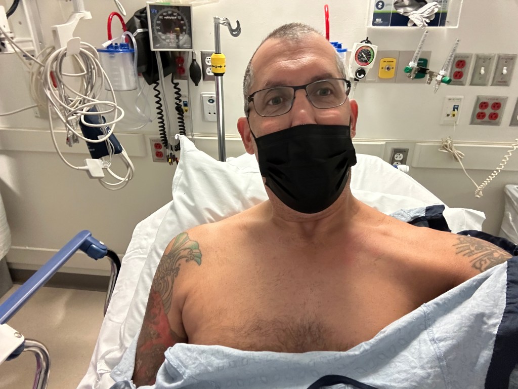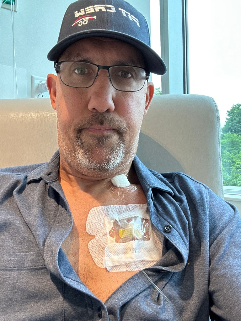 And then there was Friday. That’s when the shit started getting real. The infusion itself was pretty straightforward. No real news there. I did notice that with the port I could ‘feel’ the medicine in my system sooner. And what I mean by feel is actually taste it. One of the worst side effects of this four platinum agent course of chemo is the very strong (and lingering) metallic taste it creates. It’s indescribable other than to say it’s absolutely miserable. As soon as the first agent hit my bloodstream and I mean literally as it was passing into my body I could taste the meds. Disgusting! Day 2 of the cycle is the longer of the two days, usually 5 hours, so it’s a day I plan to get a bit more ‘comfortable’ in the chair.